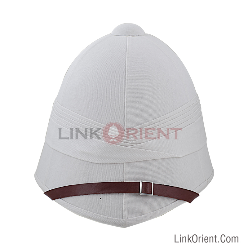 It is a fine recreation of the British pith helmet used in the Zulu War and the Victorian Colonial period. This brand new reproduction is handmade one at a time using the special pith of an indigenous tree - Sesbania Javanica living in swamp (called Cay Muong, only cultivated in northern Vietnam) and hat making methods learnt from the French during their occupation dating back to the 1900s. The rounded neck flap and front brim make this pith hat so distinctive compared to others pith helmets. Outside cover: High quality khaki twill. Inside liner: Shade green or cream cotton fabric. Chinstrap and sweatband: High quality leather. Fittings: Ventilator, eyelet and buckle made of aluminum/ brass. We supply other fittings: helmet badge, helmet top spike, helmet top ball, helmet crosspiece, helmet rosettes, helmet chin chain. Color: As pictured. Other colors on request. Size: One size fits most. Adjustable via a Velcro lock on sweatband Finishing: Handcrafted. Product detailsBritish Foreign Service Pith Helmet - British Zulu Pith Helmet