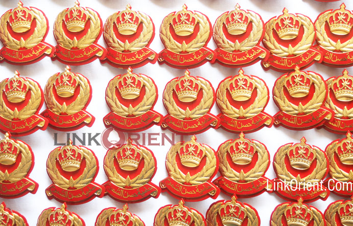 This pith helmet badge (helmet plate) is used for decoration of the ceremonial helmet worn by the Royal Gards of Oman. The product is stamped by machine and then finished by hand.