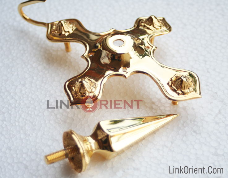 Material: Brass Color: 24 k Gold plating. Also available in Nickel and chrome plated. Length: Standard Other pith helmet fittings and pith helmet accessories are made upon request. Product detailsThe pith helmet spike and cross piece is used for various type of ceremonial helmets.