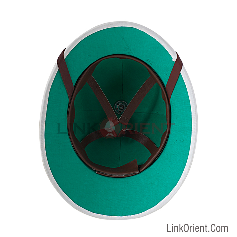 Outside cover: High quality twill fabric. Inside liner: Shade green or cream cotton fabric. Chinstrap and sweatband: High quality leather. Fittings: Ventilator, eyelet and buckle made of aluminum/brass. Color: As pictured. Other colors on request. Size: 54-58 cm. Adjustable. Other sizes on request. Product detailsGerman pith helmet