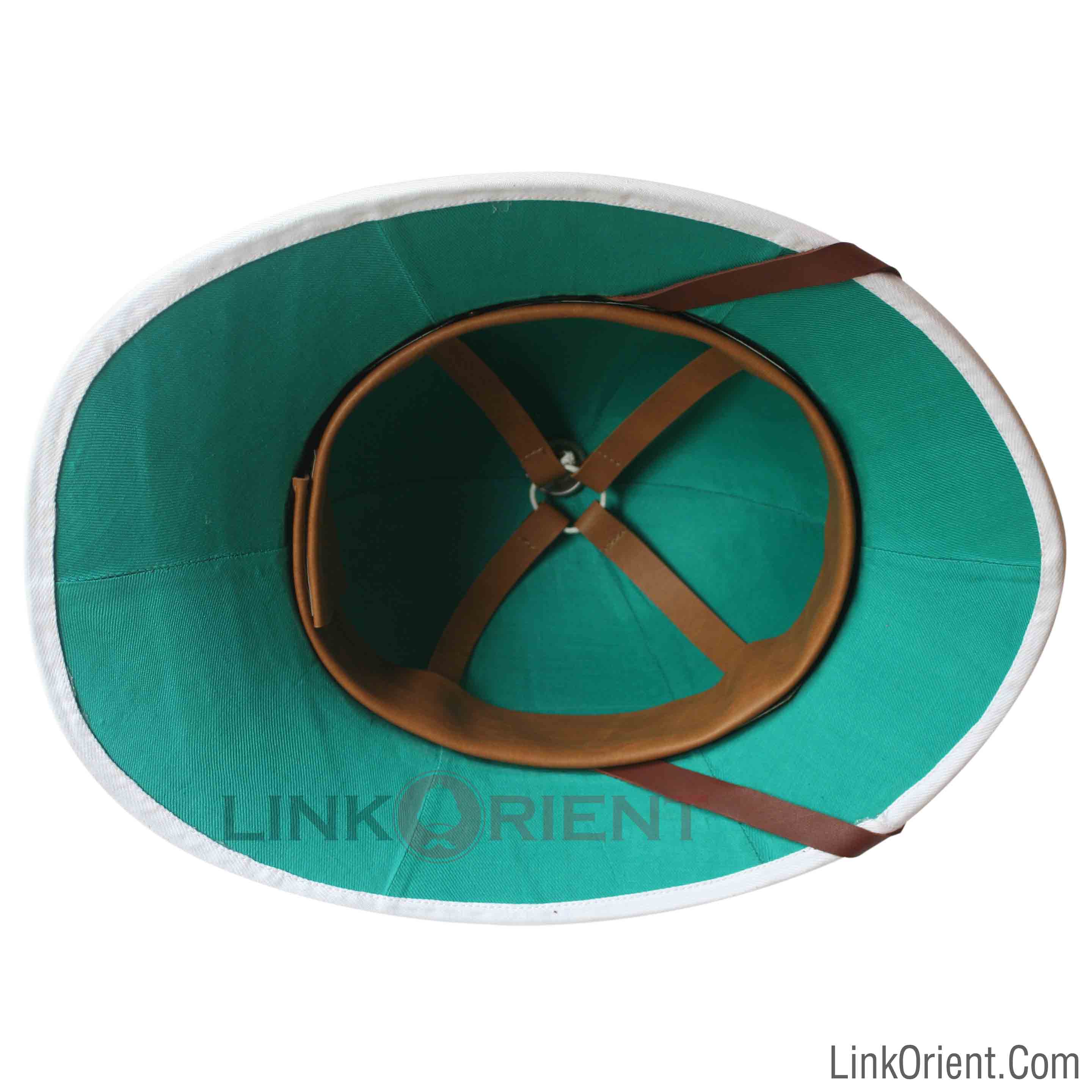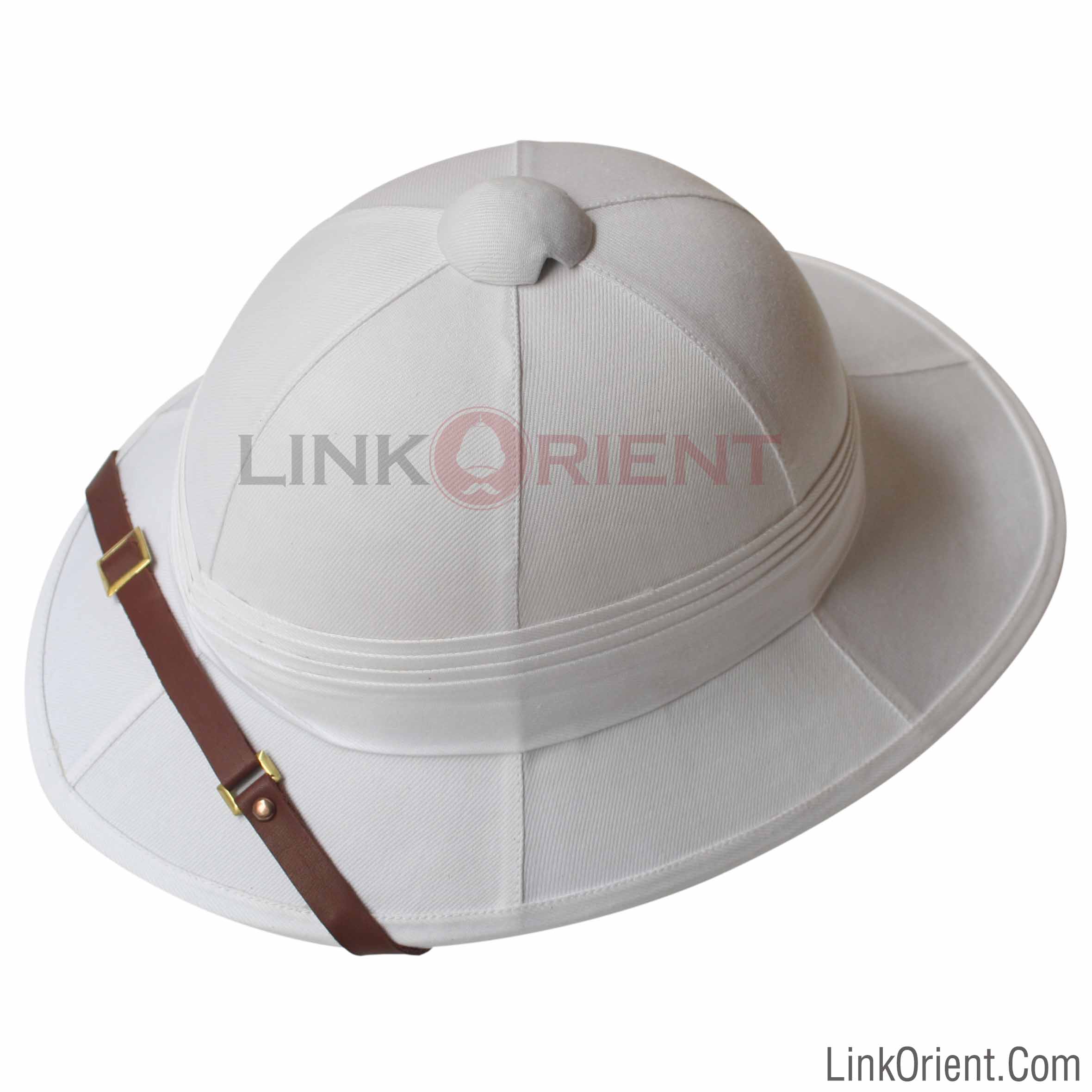 This Wolseley pith helmet is 100% handmade in Vietnam using pith (of an indigenous tree - Sesbania Javanica living in swamp) and knowhow (learnt from the French) retained and unchanged since 1900s (French colonial period). With its swept-back brim, it provides greater protection from the sun than the other pith helmets. Outside cover: High quality khaki twill. Inside liner: Shade green or cream cotton fabric. Chinstrap and sweatband: High quality leather. Pith helmet fittings: Ventilator, eyelet and buckle made of aluminum/brass. We supply other fittings: helmet badge, helmet top spike, helmet top ball, helmet domed base, helmet rosettes, helmet chin chain. Color: As pictured. Other colors on request. Size: One size fits most. The velcro lock help adjusting Finishing: Handcrafted. Product detailsSuch was the popularity of this Wolseley pattern pith helmet that it became a common civilian headgear for Westerners in the tropics and sub-tropics from the mid-19th century. The civilian pith helmets usually had the same dimensions and outline as its contemporary military counterpart though it lacked decorative extras such as badges, top spikes or balls. It was worn by men and women, old and young, both on formal and casual occasions, until the 1940s. Both white and khaki versions were used. It was often worn together with civilian versions of khaki drill and/or bush jackets.